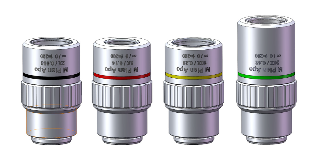 Nanoscale detail reproduction, NA=0.42 + apochromatism, achieving 0.7μm resolution (close to the diffraction limit at 550nm wavelength); flat-field design ensures clarity across the entire range of small fields of view.