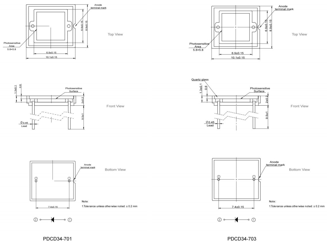 The window material is resin, and the photosensitive surface size is 3.2×3.2mm.