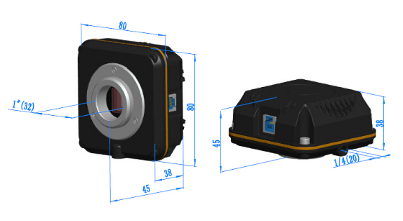 Schematic diagram of the external dimensions of the Venuslab-L3 CMOS Camera. The camera housing is made of hard aluminum alloy through machining, ensuring resistance to impact under heavy load conditions. A high-quality IR-CUT is installed at the front end of the camera sensor, which mainly functions to filter out infrared light waves in imaging and protect the camera sensor at the same time. Compared with cameras of other brands, Venuslab's cameras have no moving parts to ensure that the camera is sturdy, reliable, and durable. At the same time, there is no image blurring caused by the shaking of moving parts.
