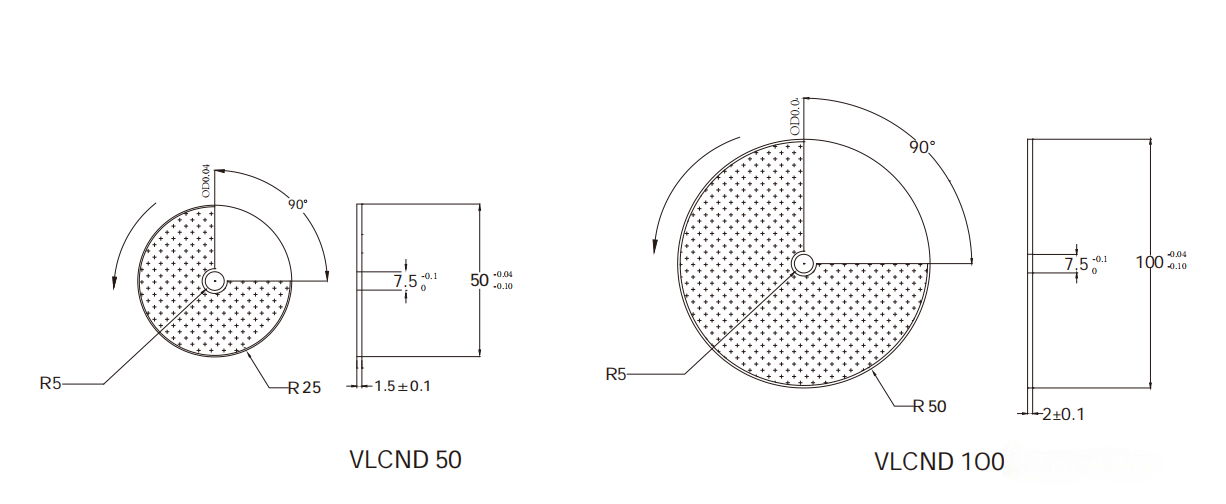 The VenusLab VLCND Series addresses the inflexibility of fixed filters in handling varying light intensities. These filters feature a coating where optical density gradients along the angle. Maintaining spectral neutrality, they can be used to dynamically adjust the total transmitted light energy of a system or control the intensity distribution across the beam cross-section.