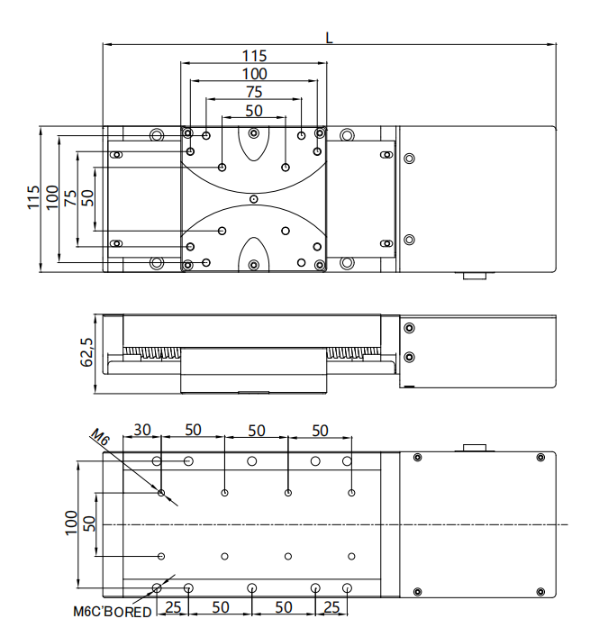The VL-220UPTA-(50-300)H is a high-performance electric linear stage designed for industrial and scientific applications requiring precise positioning. This device offers an adjustable travel range of 50-300mm, with a working surface size of 179x179mm, and a maximum load capacity of 6.3kg. It uses high-precision ball screw transmission and linear block guides to ensure a repeat positioning accuracy of 1µm and a maximum operating speed of 60mm/s. It comes with a built-in dust cover and options for additional accessories such as an optical scale and servo motor.