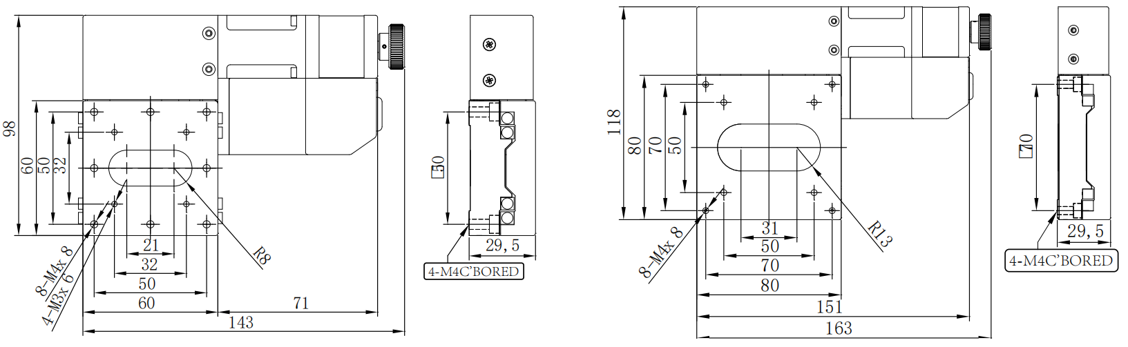 | VL-230HPTA SeriesHigh Precision Stage | VL-230HPTA-M50 | 50 mm | 150 × 150 mm | 20-50kg | Res: 1μm Cost-Effective |