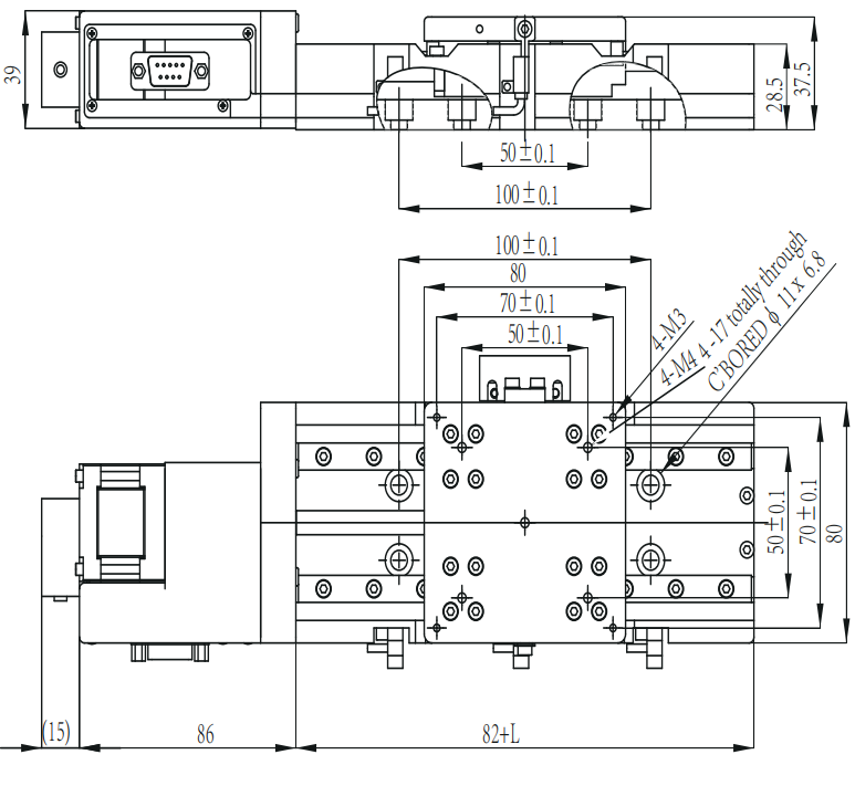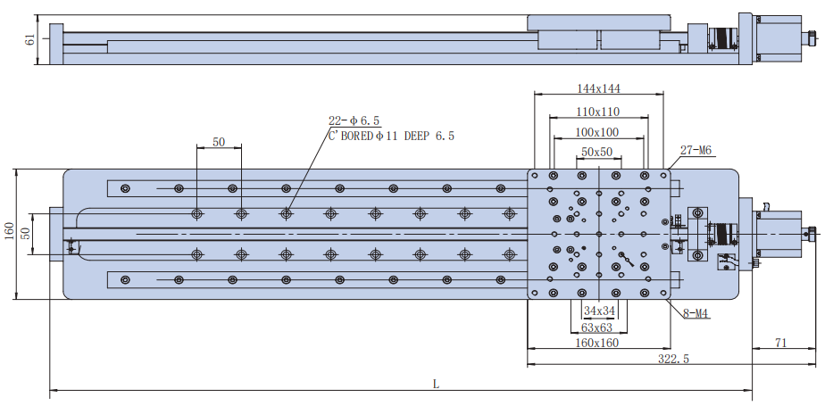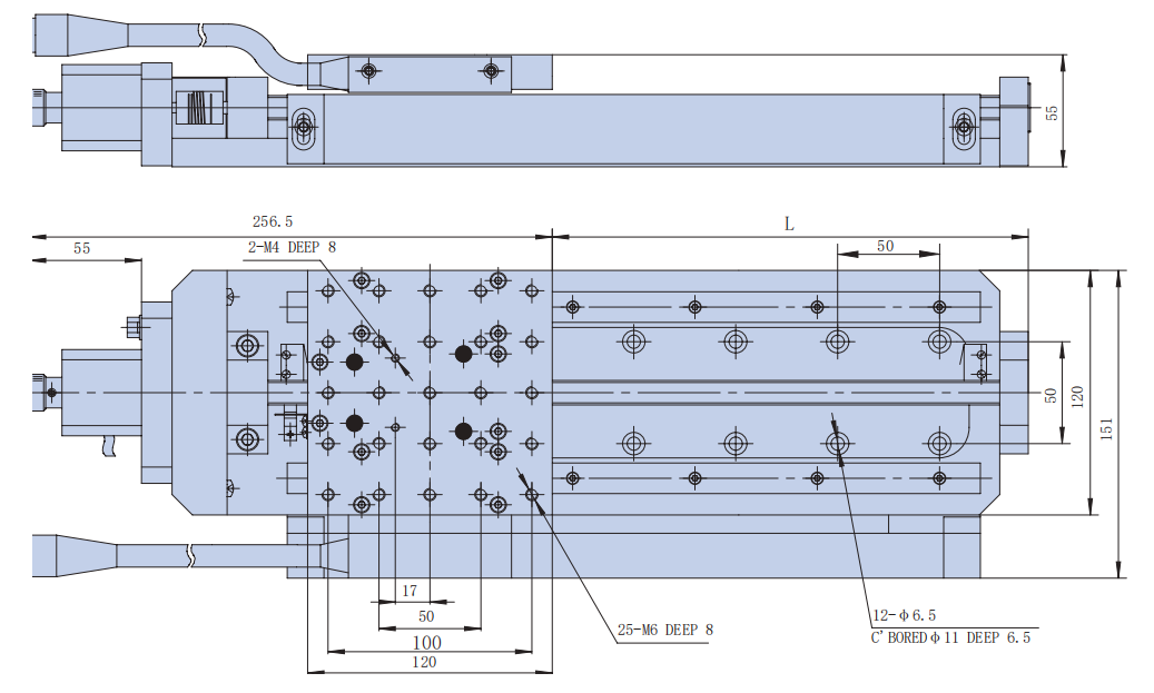 | VL-265CDTACenter-Drive Stage | VL-265CDTA-15H-4040 | 15 mm | 40mm ~ 120mm | 6 kg ~ 25 kg | Central Motor Layout Symmetric Design Cross-Roller |
