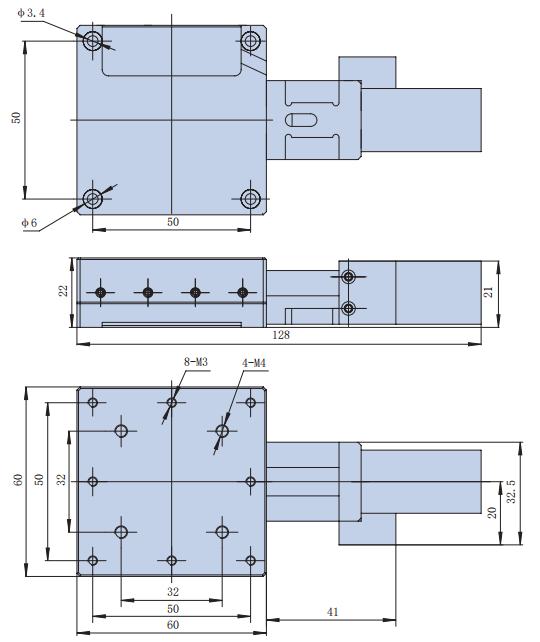| VL160TA SeriesNarrow Profile Stage | VL160TA50H | 50 mm | 60 × 60 mm | 3-8kg | Slim Design Res: 10μm(Full) Linear Slider Guide |