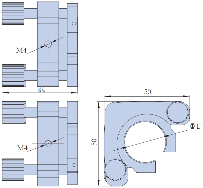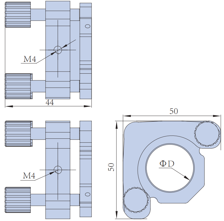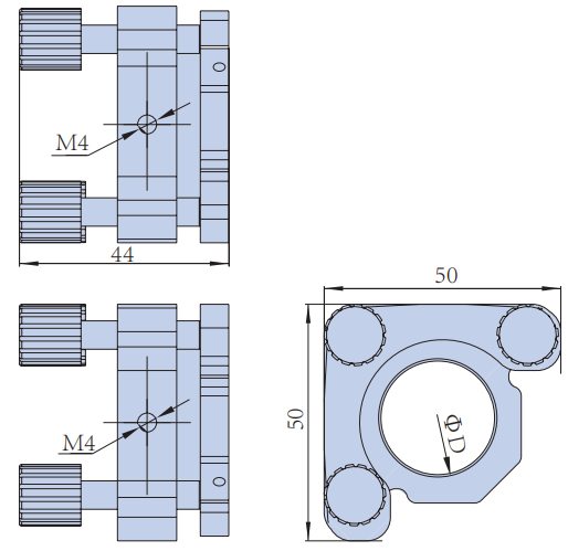 | VL-BSM-100-50 | Φ50.8 mm | Tip/Tilt | M6x0.25, Disc Spring | L-shaped structure, adjustable reset force |