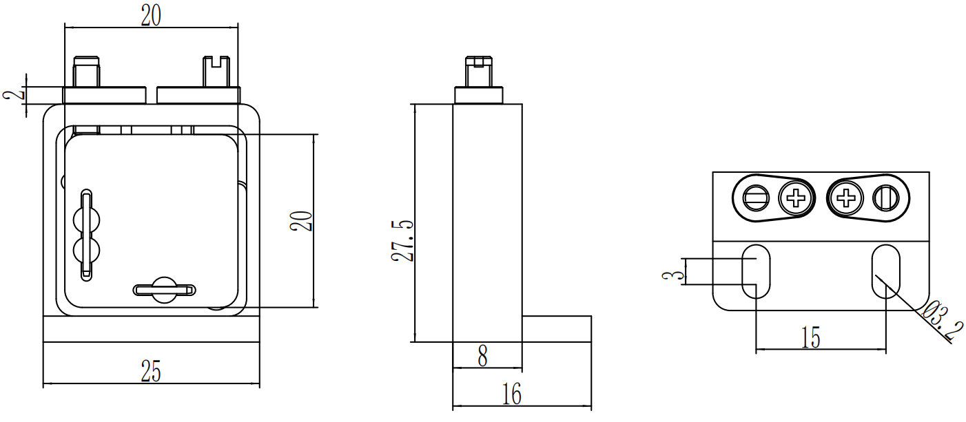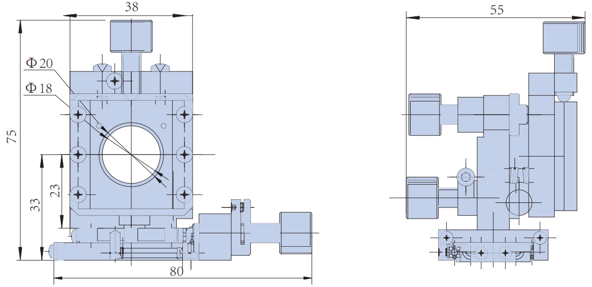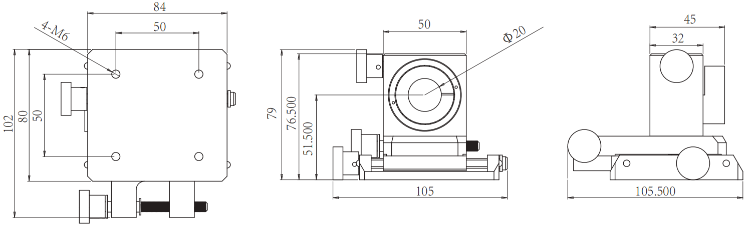 | VL-BSM-110-20 | Φ20 mm | Tip/Tilt | M6x0.25, Disc Spring | Right-angle enclosed, 2 mounting holes |