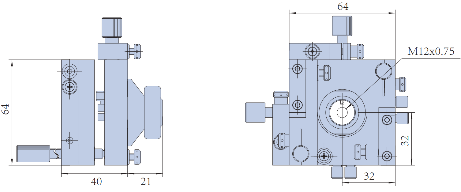 | VL-BSM-110-40 | Φ40 mm | Tip/Tilt | M6x0.25, Disc Spring | Right-angle enclosed, 2 mounting holes |
