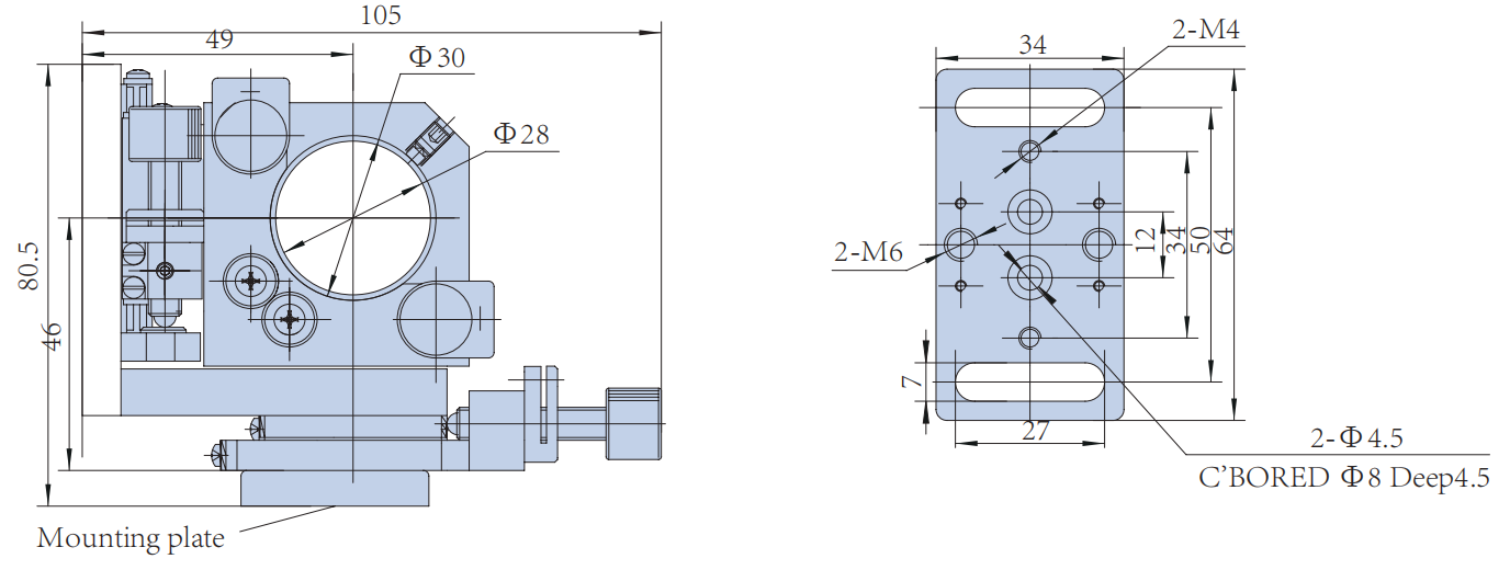 | VL-BSM-100-30 | Φ30 mm | Tip/Tilt | M6x0.25, Disc Spring | L-shaped structure, adjustable reset force |