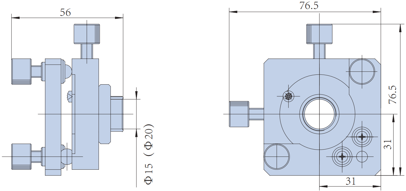 | VL-BSM-130-15 | Φ15 mm (A=15) | Tip/Tilt | M6x0.25, Disc Spring | Lens tube mount, Teflon protection |