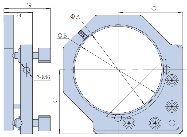| VL-BSM-100-40 | Φ40 mm | Tip/Tilt | M6x0.25, Disc Spring | L-shaped structure, adjustable reset force |