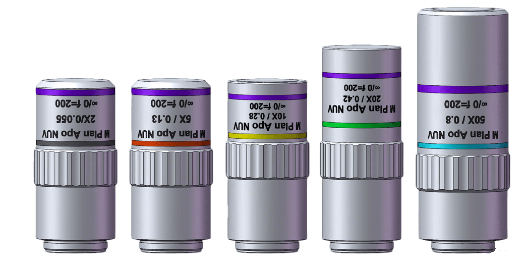 VL Plan Apo NUV/M Plan Apo NUV HR近紫外视场物镜 无限远校正的明视场平场复消色差物镜 广泛应用于半导体激光加工、液晶修复、科研分析。