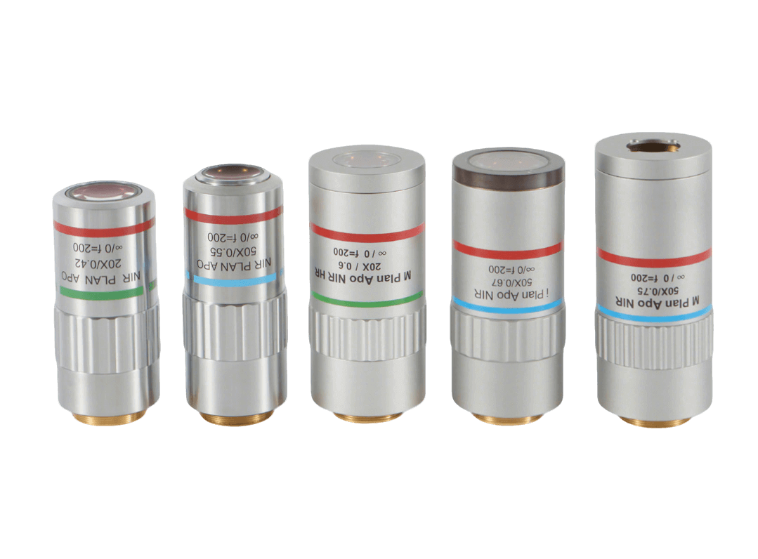 t0 补偿 0mm 玻璃,高 NA + 复消色差实现近红外精细成像,平场设计消除高倍边缘模糊。