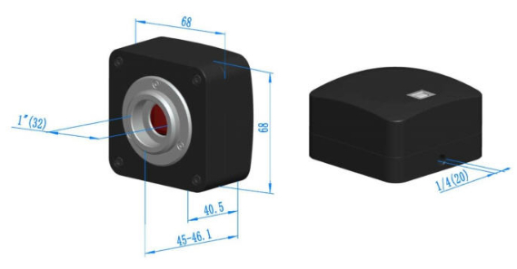Schematic diagram of the external dimensions of the Venuslab ExView EX Camera. The camera housing is made of hard zinc-aluminum alloy, precision-machined by CNC and then oxidized. A high-quality IR-CUT is installed at the front end of the camera sensor, which mainly functions to filter out infrared light waves in imaging and protect the camera sensor at the same time. Compared with cameras of other brands, Venuslab's cameras have no moving parts to ensure that the camera is sturdy, reliable and durable. At the same time, there is no image blurring caused by the shaking of moving parts.